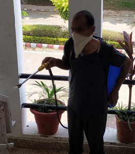 Spraying sodium hypochlorite solution