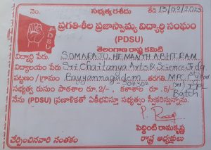 Hemanth Abhiram Somaraju. Member of PDSU. Progressive Democratic Students Union Telangana.