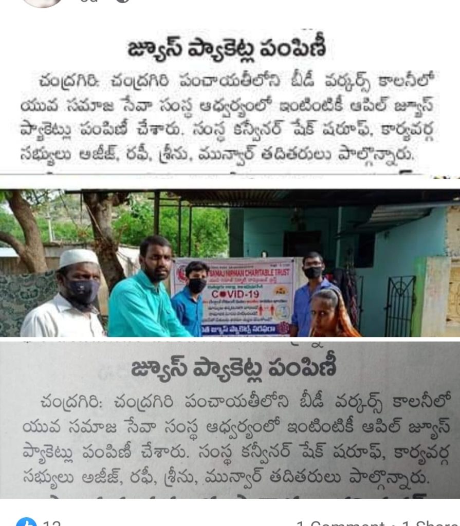 చంద్రగిరిలో మాస్కులు మరియు జ్యూస్ ప్యాకెట్ల పంపిణి-YSNCT TEAM